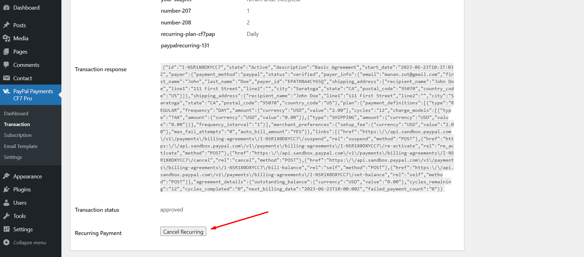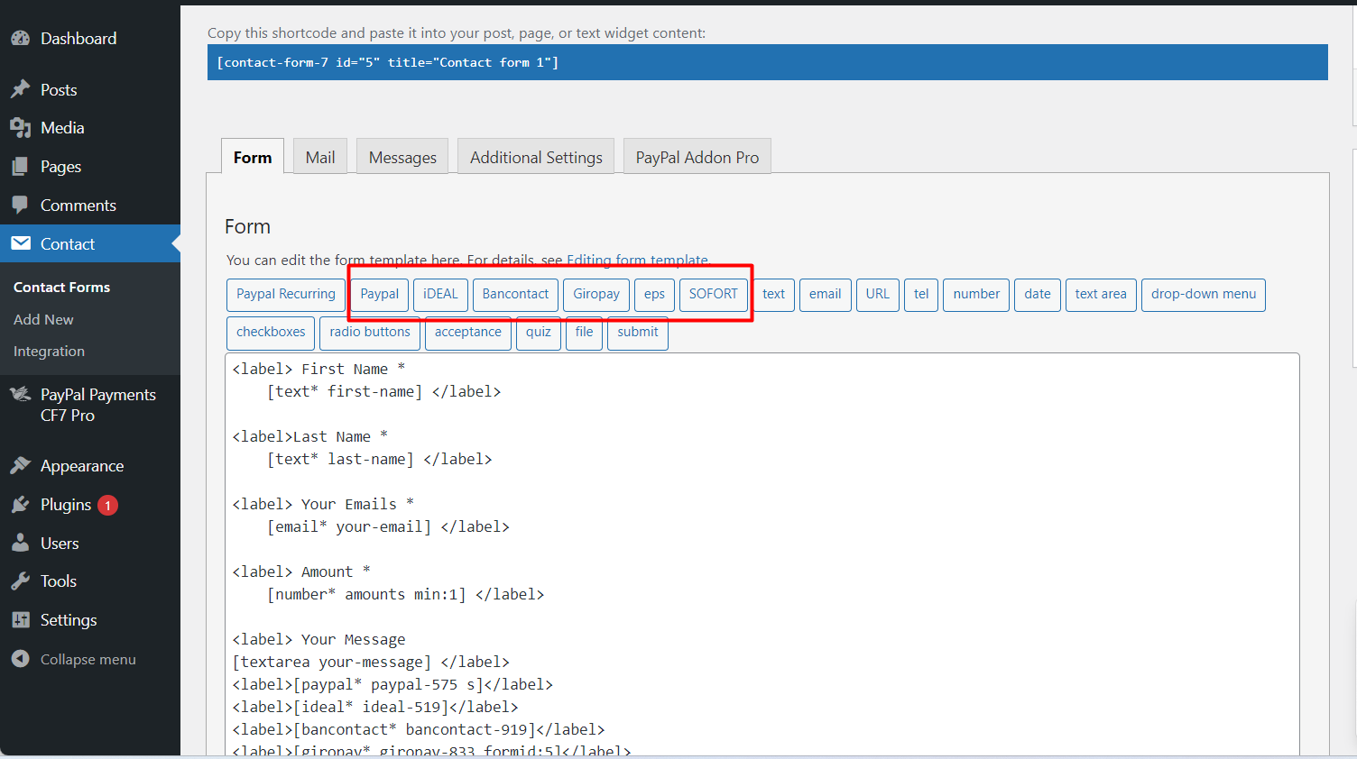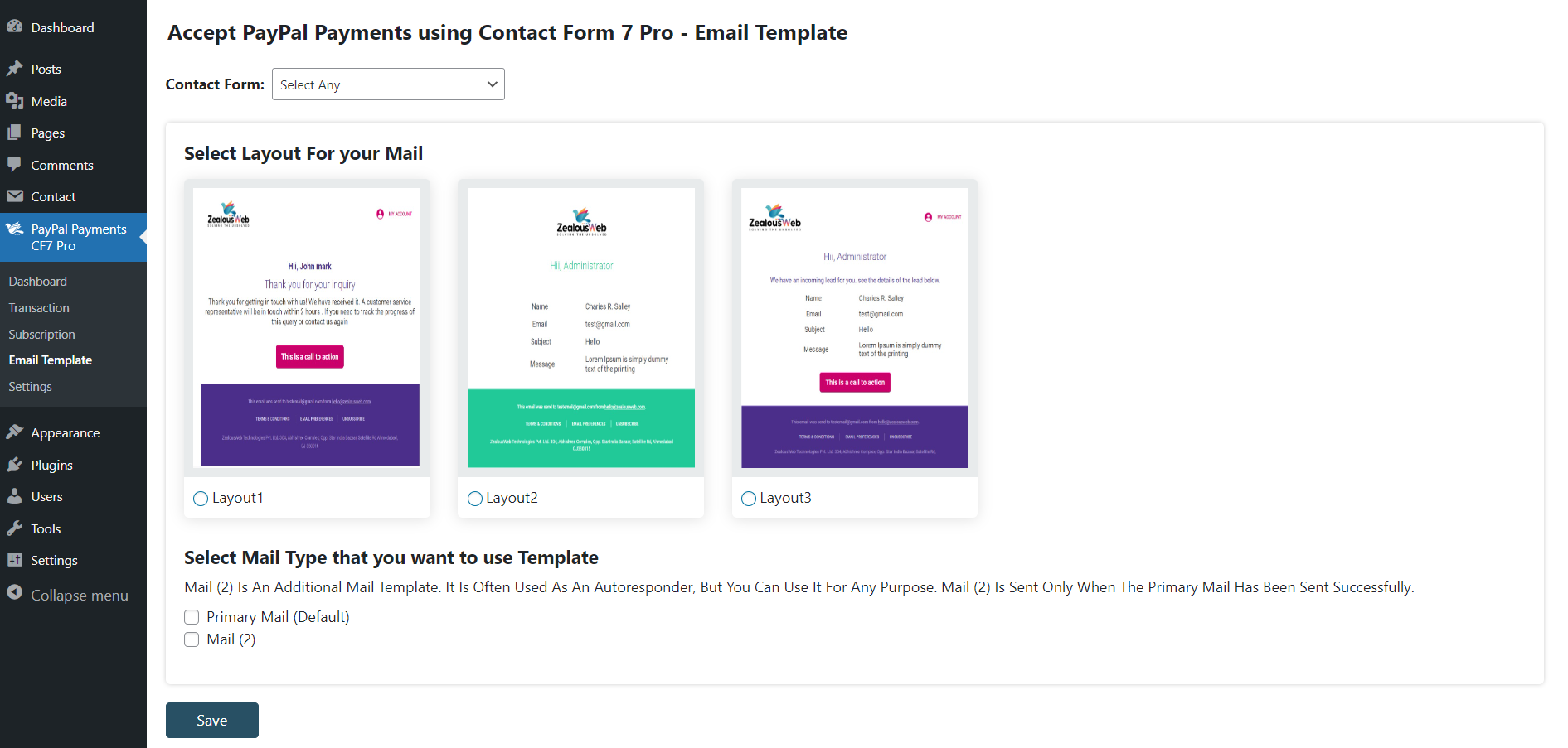 - Admin can use the default contact form 7 mail settings for managing PayPal payment mail.