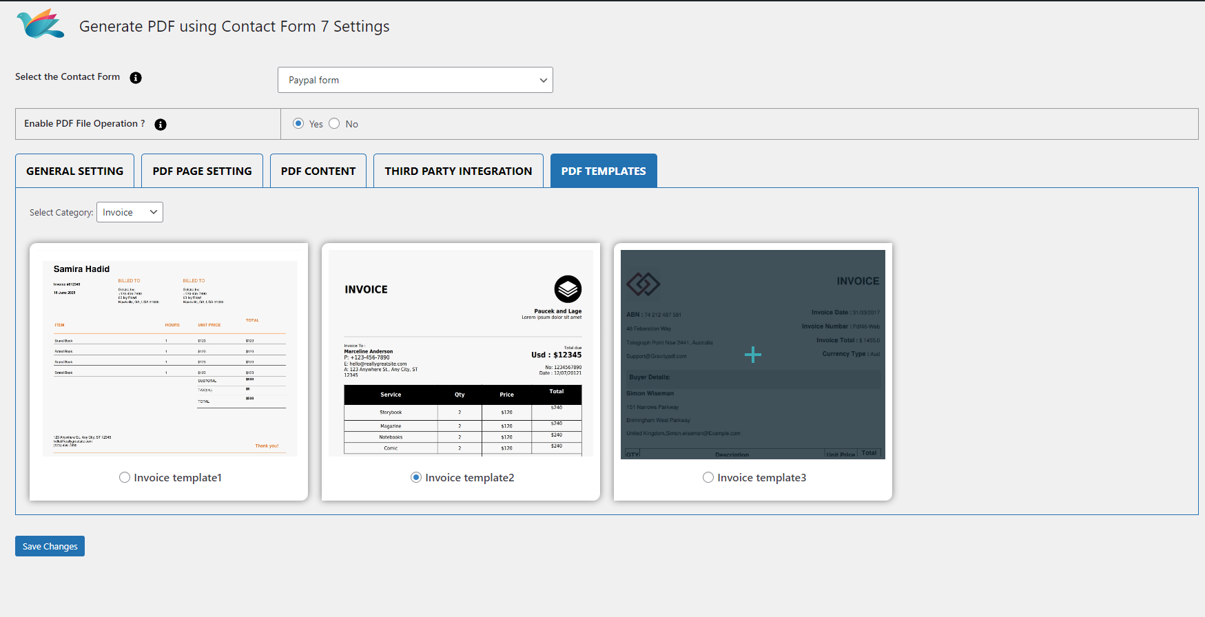Last Update: April 17, 2023- Using our additional plugin, Create PDF Using Contact Form 7 Pro, you may create an Invocie Template for PayPal Payment.