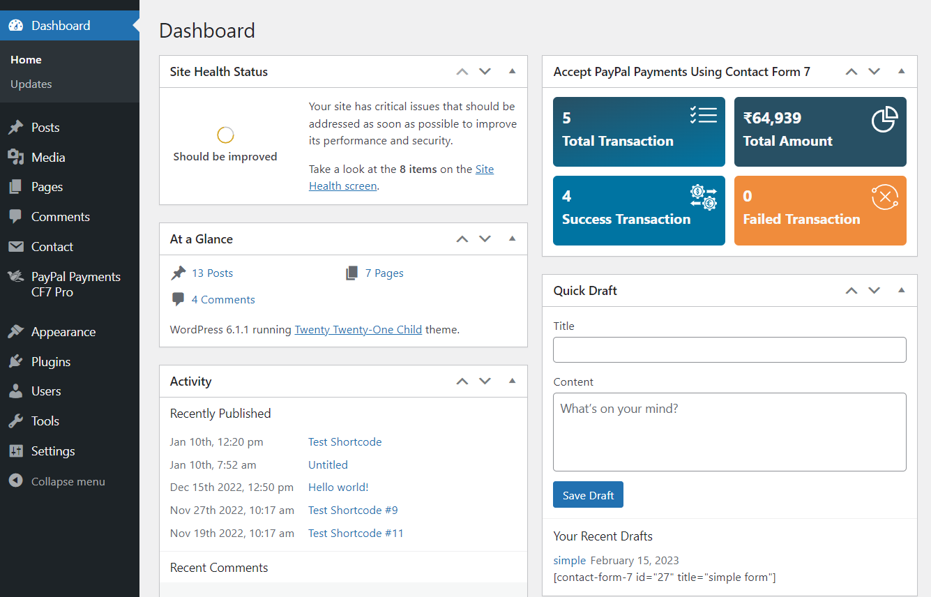 ZealousWeb ‘Accept PayPal Payments for Contact Form 7 Pro’ plugin is designed to resolve the integration issues faced by users while streamlining the process. The ‘Accept PayPal Payments for Contact Form 7 Pro’ plugin facilitates payment collection using the Contact Form 7. WordPress developers can use the ‘Accept PayPal Payments for Contact Form 7 Pro’ to add a PayPal submit button in Contact Form 7 that redirects to PayPal. PayPal’s Pro extension can add value to WordPress sites seeking fast, quick online payment integration.