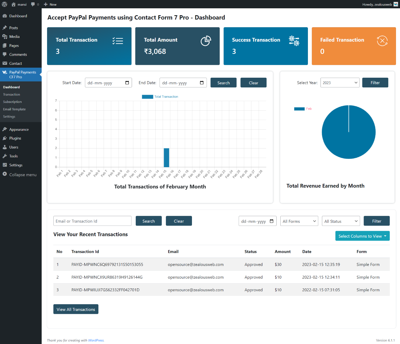Last Update: February 17, 2023- Plugin with the separate menu as "PayPal Payments CF7 Pro"