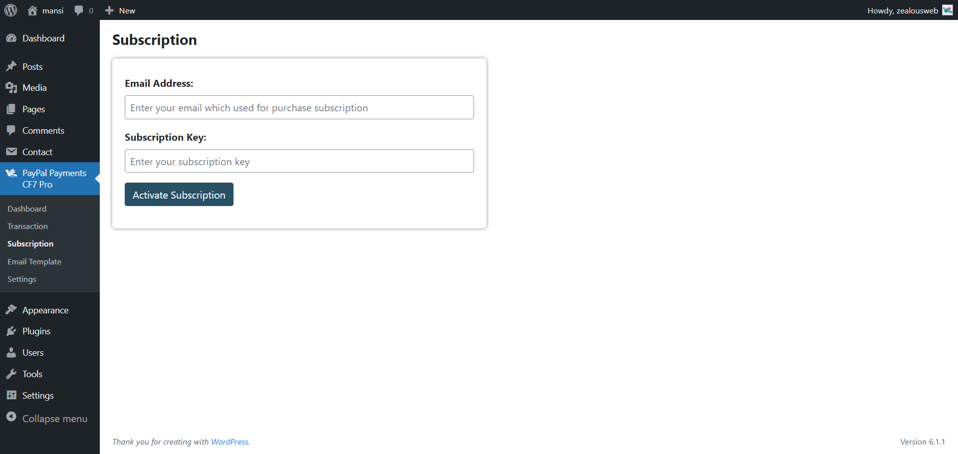 ZealousWeb offers its services to look into the compatibility of Accept PayPal Payments using Contact Form 7 Pro with a third-party Add-on within 30 days of support if the task is of less complexity. We do not assure the compatibility of the Contact Form 7 - PayPal Addon Pro with any other third-party Addon. Kindly note that you will be charged extra for more complex compatibility issues of Contact Form 7 - PayPal Addon Pro with third-party Addon; our team will charge extra. Additionally, the complexity of the tasks will solely be decided by and will be at the discretion of ZealousWeb Technologies Pvt. Ltd. If you have any problems, questions, or issues about this plugin, please submit a support request, and we shall get back to you quickly.