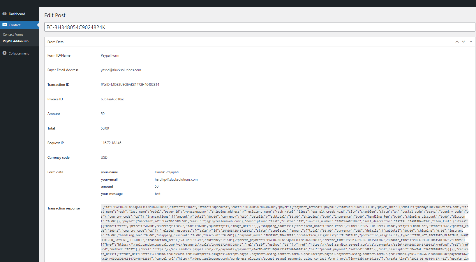 for WordpressZealousWeb ‘Accept PayPal Payments for Contact Form 7 Pro’ plugin is designed to resolve the integration issues faced by users while streamlining the process. The ‘Accept PayPal Payments for Contact Form 7 Pro’ plugin facilitates payment collection using the Contact Form 7. WordPress developers can use the ‘Accept PayPal Payments for Contact Form 7 Pro’ to add a PayPal submit button in Contact Form 7 that redirects to PayPal. PayPal’s Pro extension can add value to WordPress sites seeking fast, quick online payment integration.