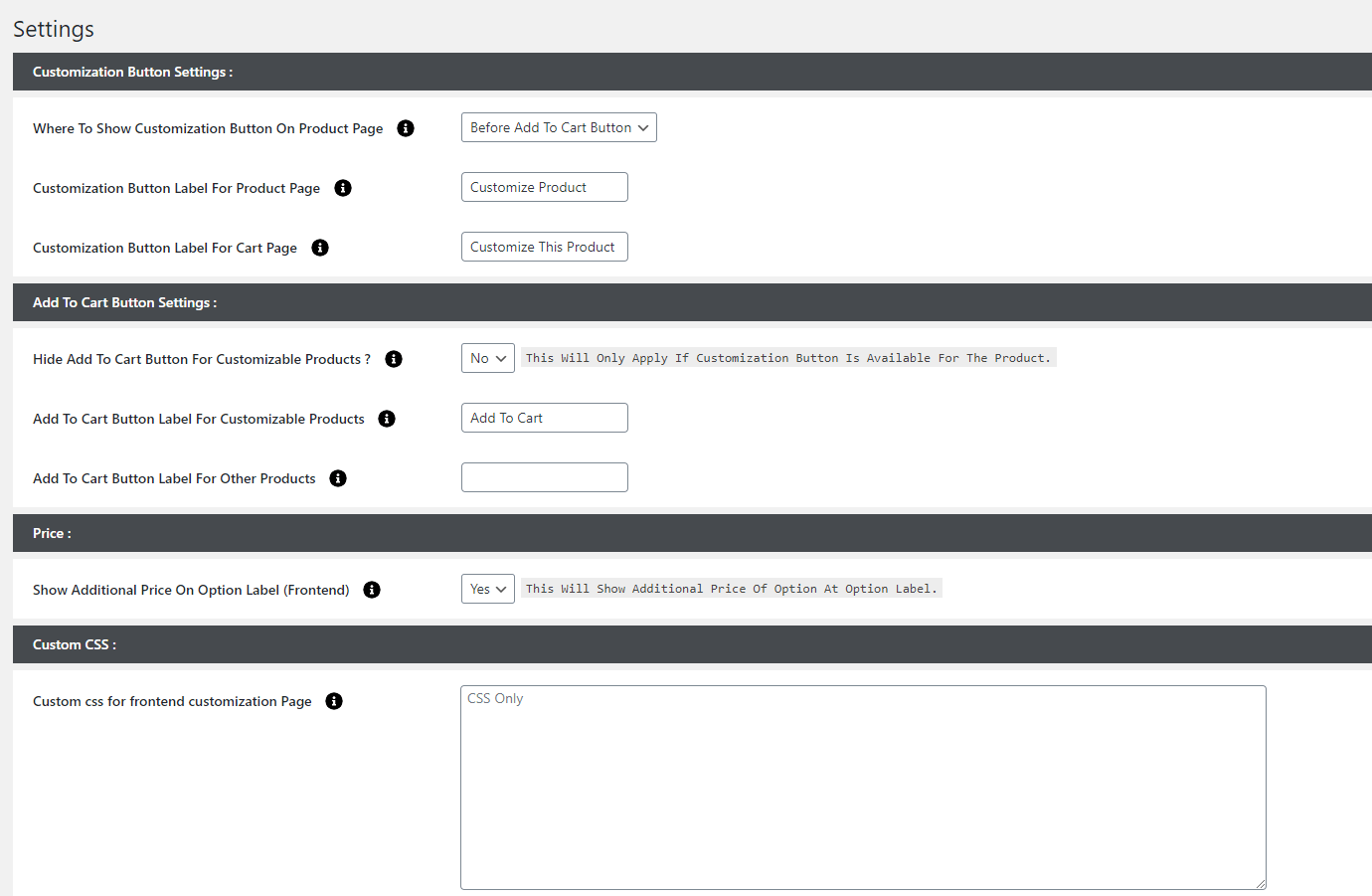 Yes, you can change it from the “Customization Button Settings” tab from plugin settings for Product page as well as cart page.