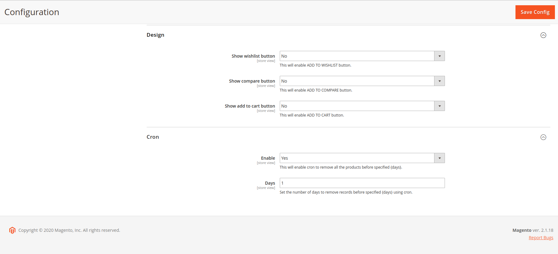 - There is an option to enable/disable cron to remove all the products before specified days.