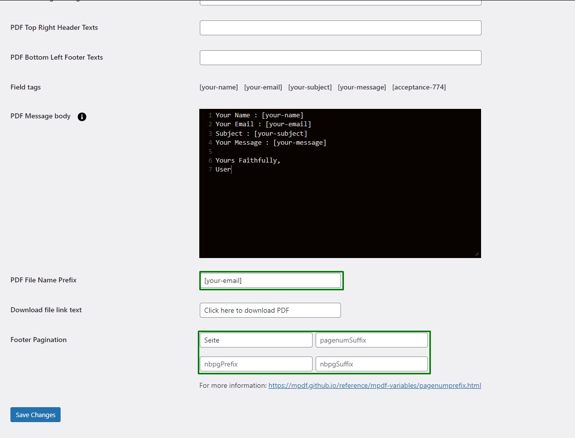 The 'Generate PDF using Contact Form 7' plugin provides an easier way to download PDF documents and open the PDF document file after successful form submission. It lets users set the document file (PDF) using each Contact Form's 'Form Setting' Page.