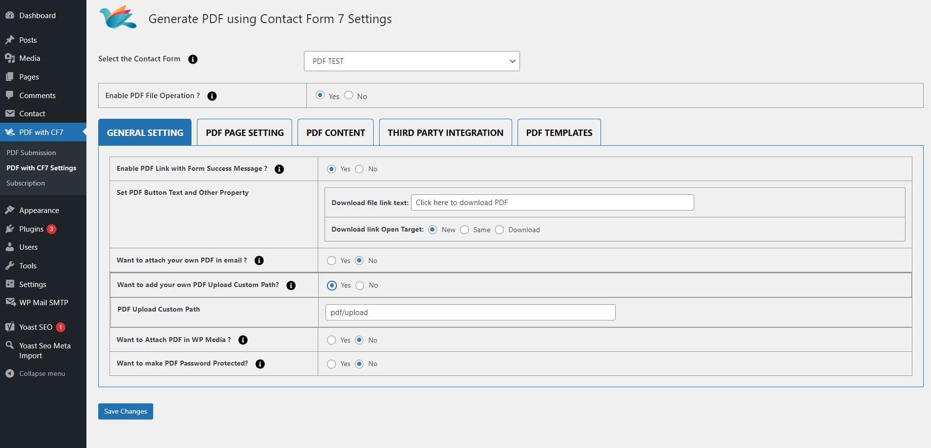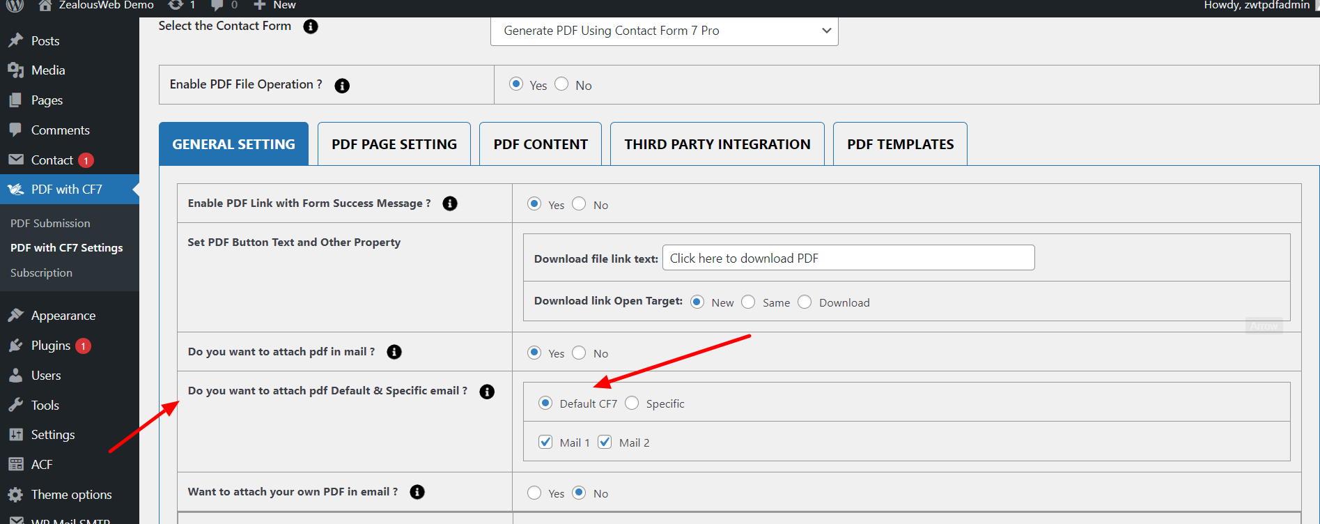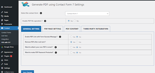 for WordpressZealousWeb's 'Generate PDF using Contact Form 7' plugin for WordPress facilitates an easier way to download PDF documents and open the PDF document file after the successful form submission. The 'Generate PDF using Contact Form 7 Pro' plugin allows the user to set the document file as PDF from the 'Form Setting' Page of each Contact form.