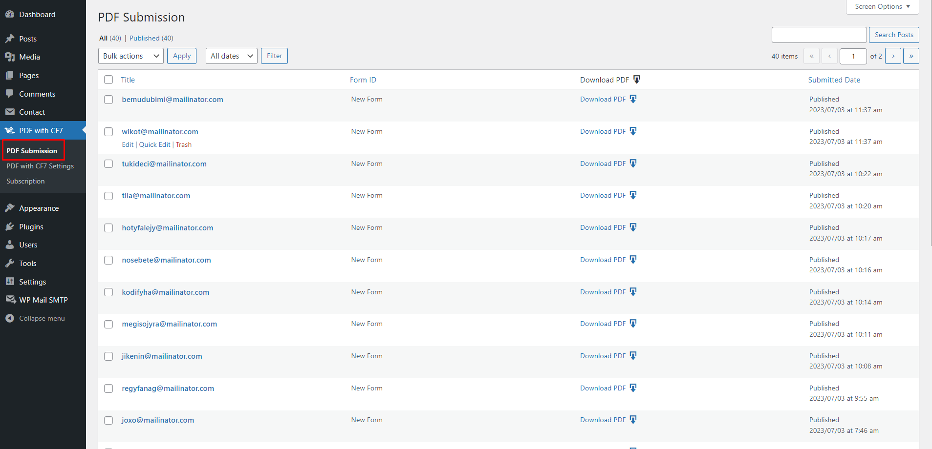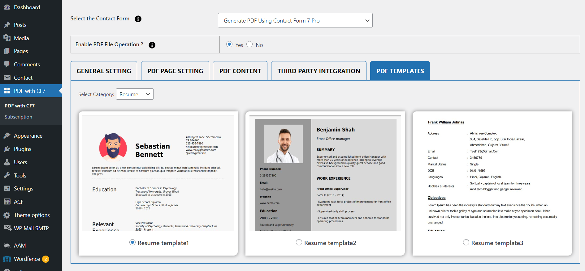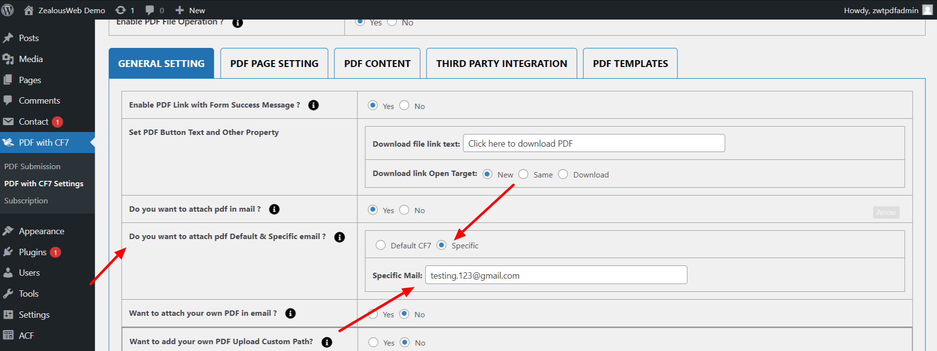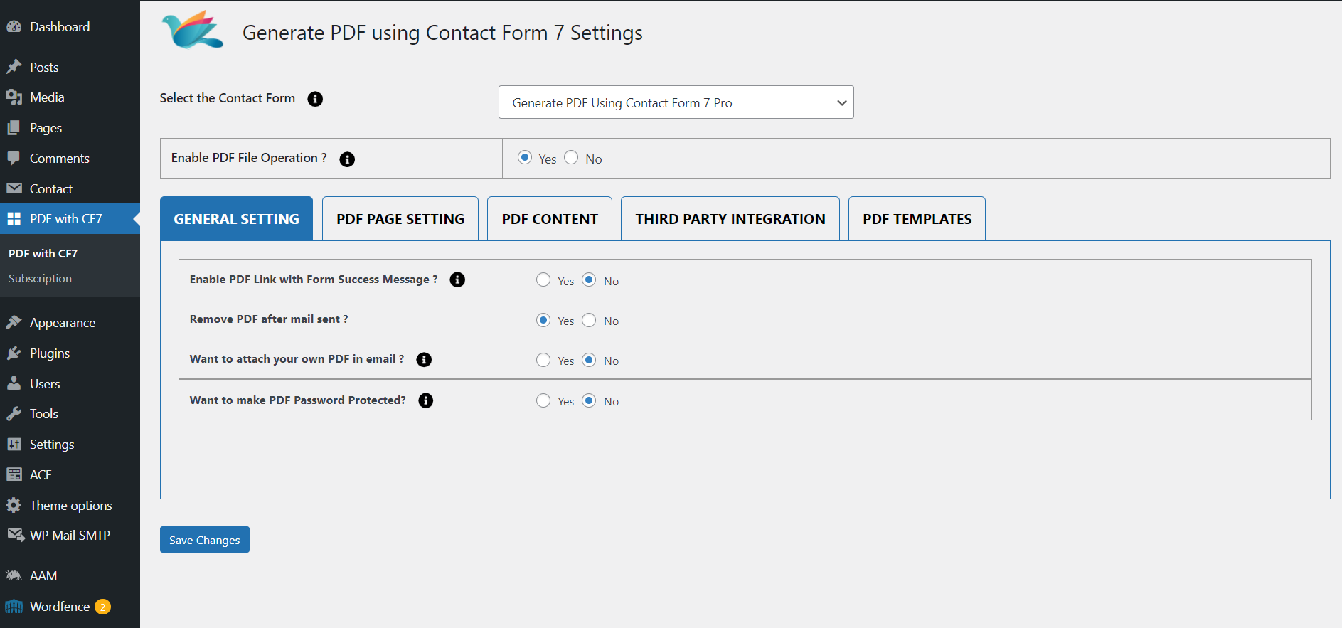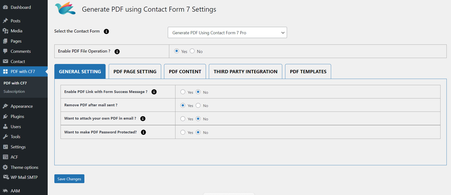 Leveraging the 'Generate PDF using Contact Form 7 Pro' plugin enables WordPress Admin Dashboard users to add fillable PDF attachments to email messages and form submission responses of Contact Form 7.