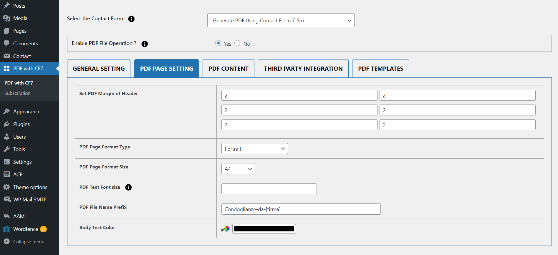 - Want to attach your own PDF in an email? - Yes - Select this option if you want to attach your own PDF file with Contact Form 7 Mails. On selecting this option as the user will be attaching their own pdf the PDF Page Settings will be disabled.