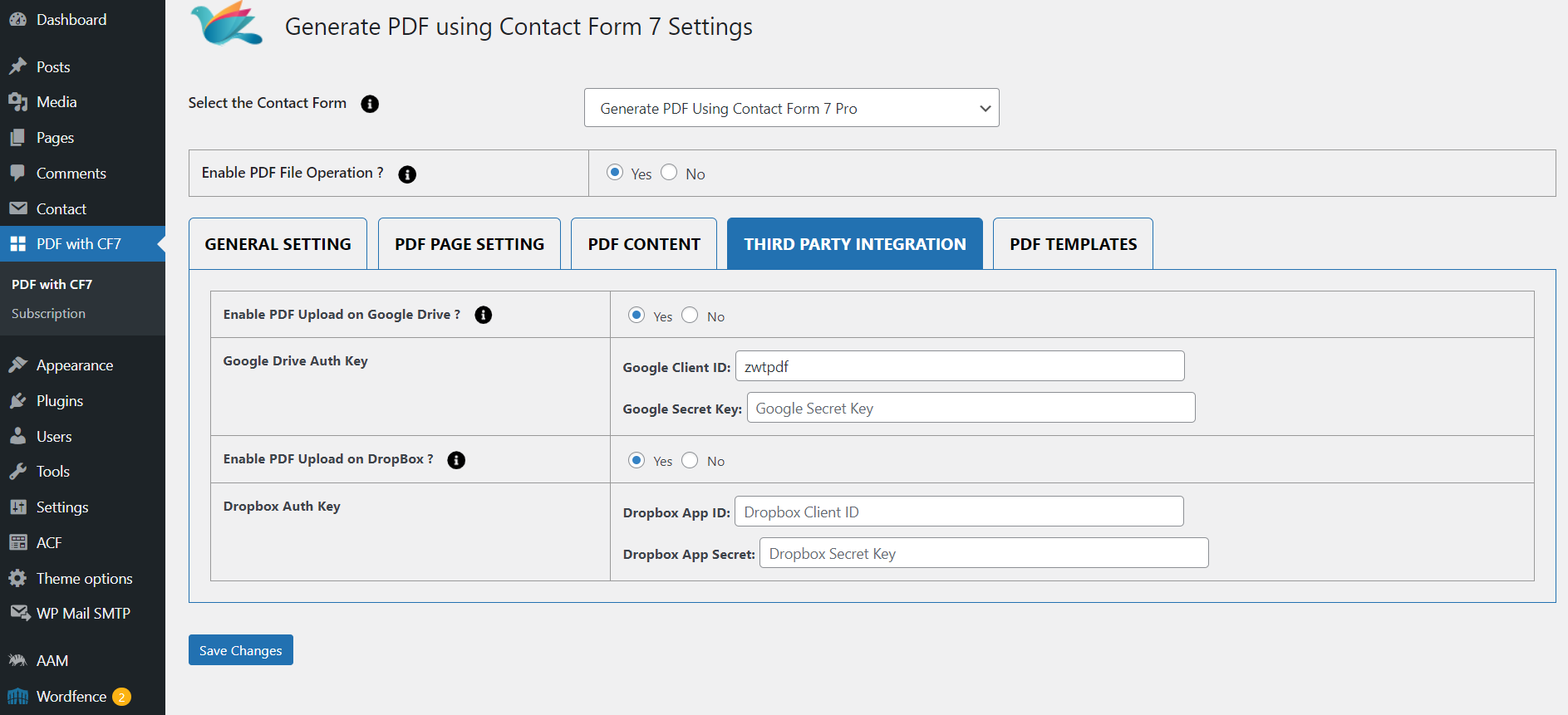 Also, Generate PDF using the Contact Form 7 Pro plugin provides Google and Dropbox third-party integration, enabling you to submit your generated PDF directly to Google Drive Or Dropbox space. So it helps reduce occupied space on your server.