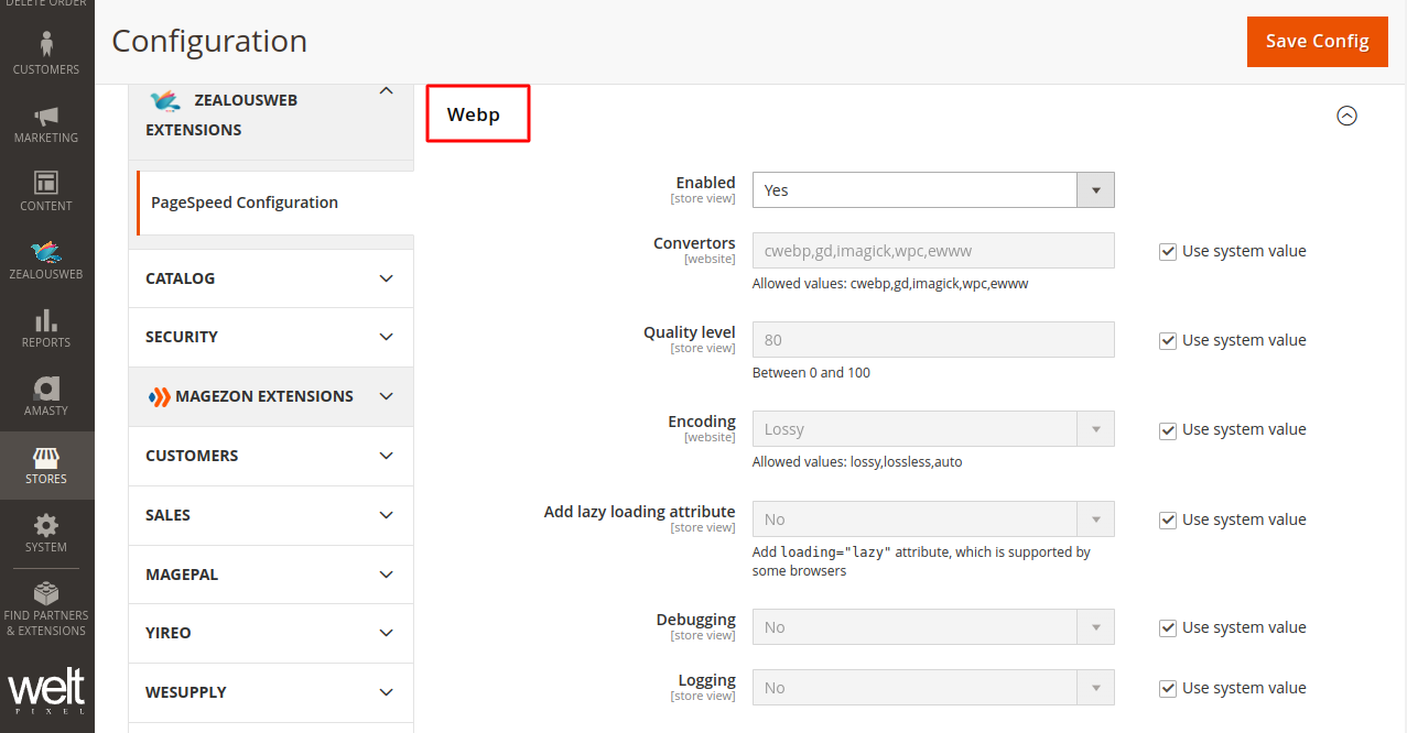 - WebP image configuration