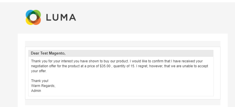 - Store owners can add success messages they wish to display as customers request the negotiated price. Email templates can be managed from the Magento admin panel.