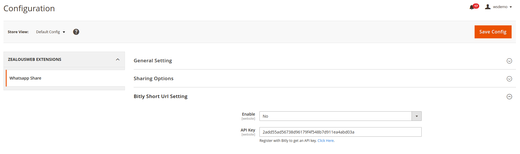 - Admin will have ability to enable/disable Bitly Short URL Setting from the admin area.