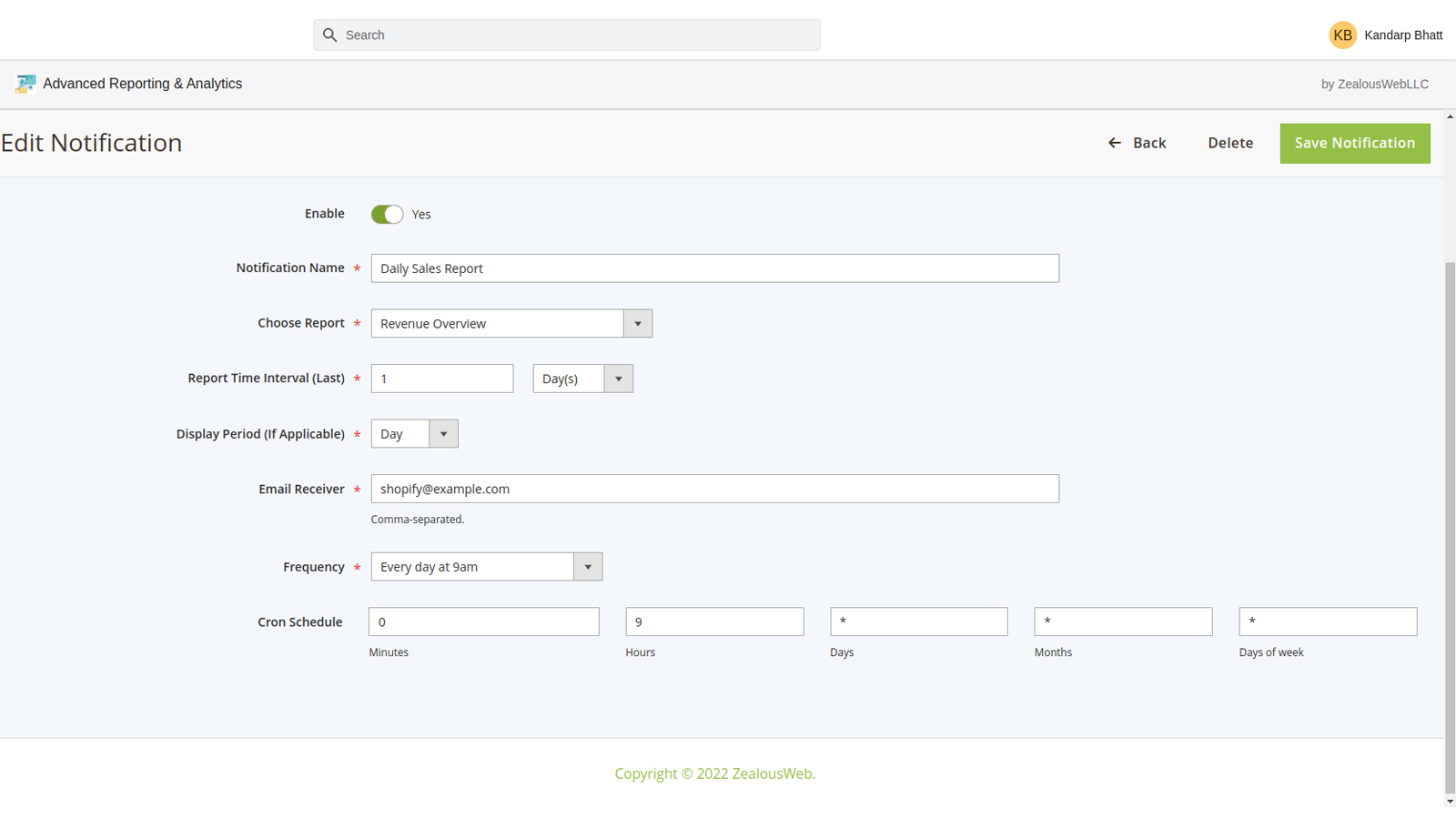 ZealousWeb’s latest app offers three attractive dashboards - sales, customers, and products. The Advanced Reporting & Analytics App for Shopify enables Admins to schedule email notifications for any built-in reports. The new Shopify app allows Admins to choose the timing of these notifications.
