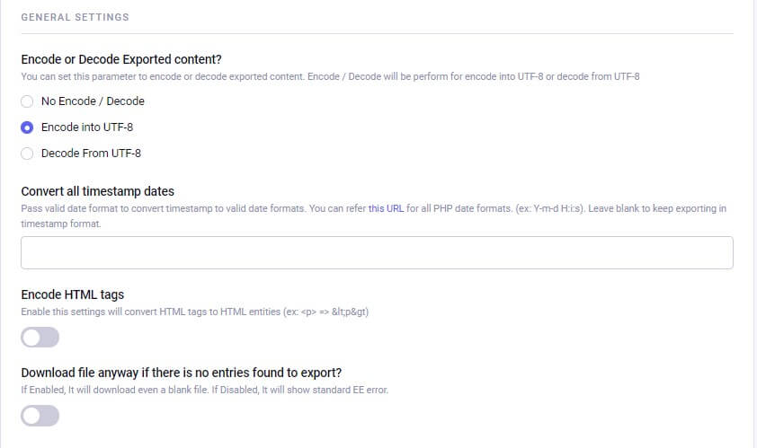 Last Update: May 05, 2020- Solved the issue of non-encoded characters in the export by providing the setting of “Disable ob_start and ob_clean functions for export” in “Export General Settings.”