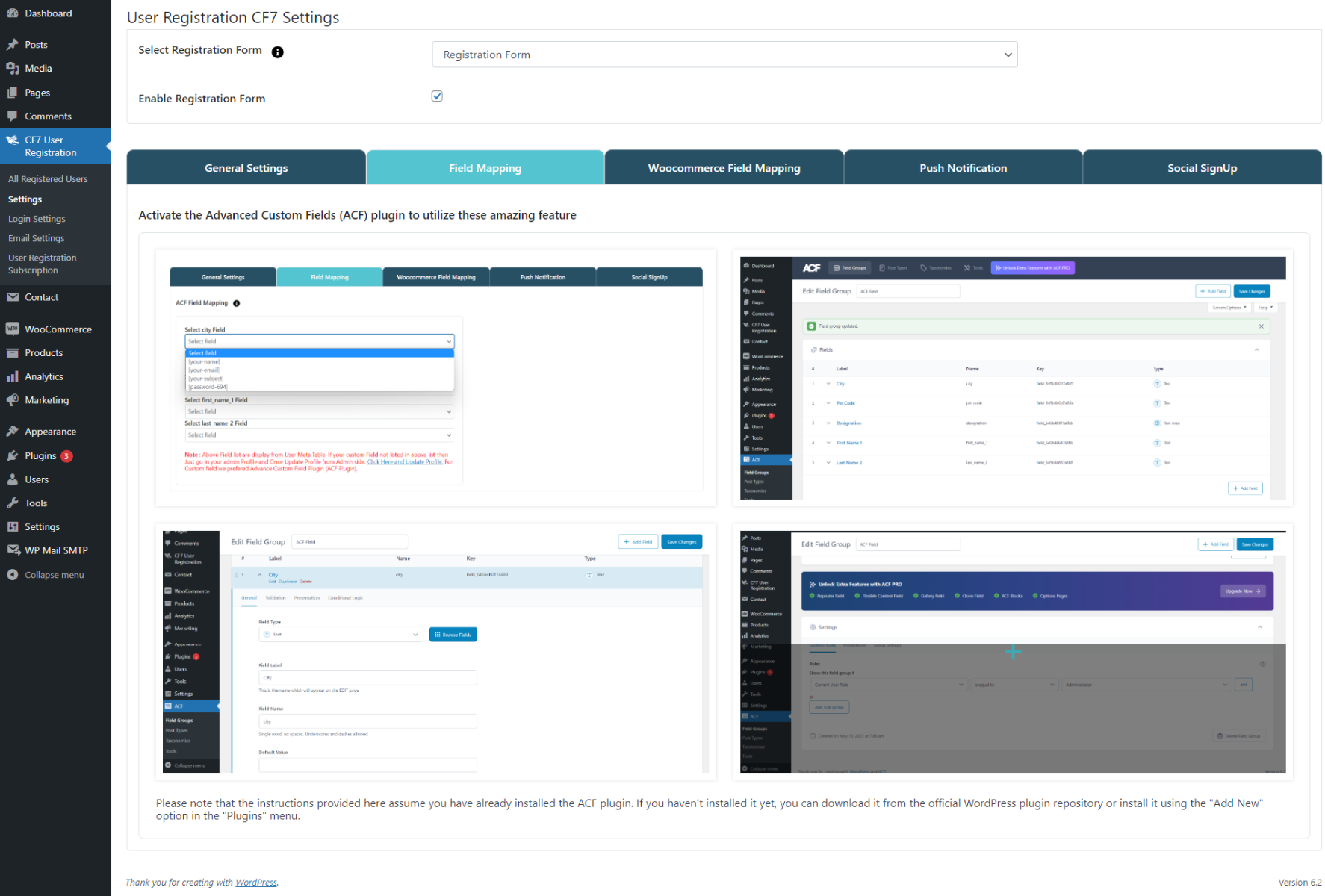 Last Update: May 23, 2023- Advanced Custom Field Mapping: Settings for Acf Field Mapping Will display only configured Acf fields instead of user fields.