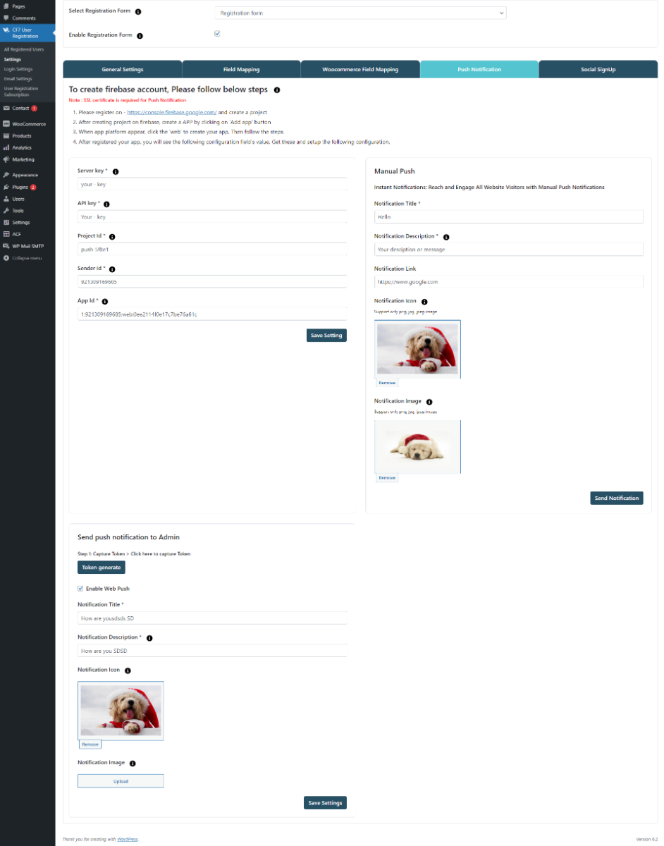 - Push Notifications: Set up push notifications to be sent to registered users on your site, keeping them informed and engaged.