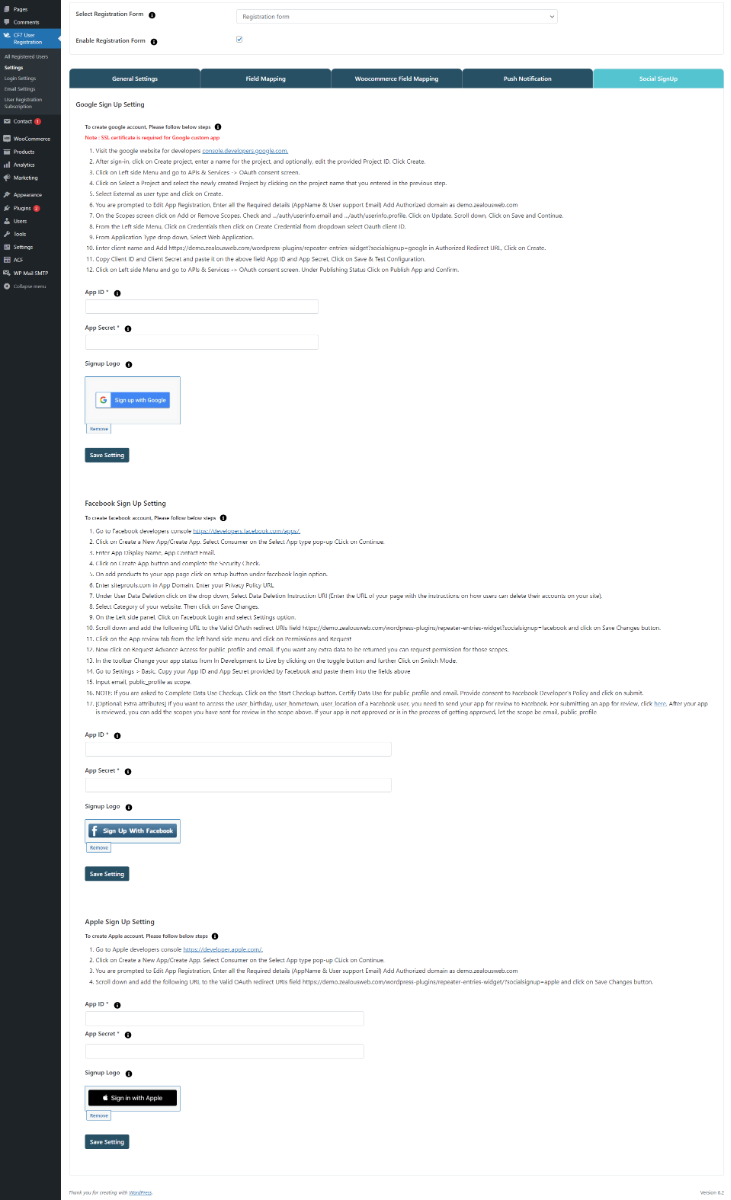 - Social Sign Up + Login: Enable users to sign up and log in using popular social media platforms such as Google, Facebook, and Apple.