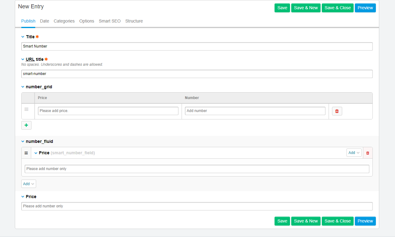 The smart number field type add-on revolves around numbers. The Smart number field type add-on has both functionalities that work in the backend and frontend. It is easy to use and compatible with Channel entry, Grid, Fluid, and Relationship fields.